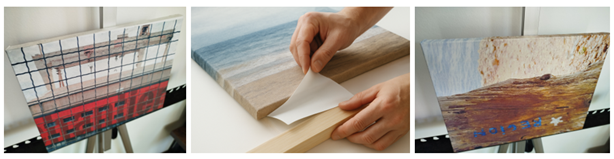 Je travaille principalement sur châssis toilés afin d’offrir à mes photographies stabilité et durabilité. Le marouflage constitue ensuite une étape essentielle du processus. Cette technique, issue des méthodes traditionnelles de conservation et de restauration, consiste à coller l’épreuve photographique sur la toile à l’aide d’une colle adaptée (généralement vinylique ou acrylique, au pH neutre). L’application se fait par pressage progressif afin d’éliminer toute bulle d’air et de répartir uniformément la colle. Une fois l’image parfaitement tendue, le temps de séchage assure la rigidité et la planéité de l’ensemble. Cette méthode renforce l’aspect matière du tirage.